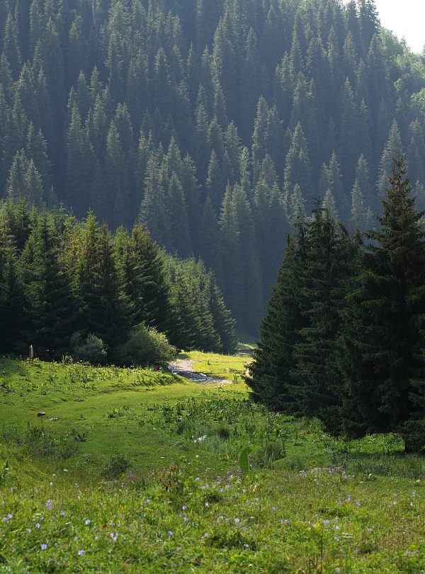 Около 2-х часов дня мы дойдем дойдем до Бутаковского ущелья. На склонах растут тянь-шаньская ель, осина, рябина и барбарис и многое другое. Главная гордость ущелья, это Бутаковский водопад. Всего здесь расположена два водопада. Нижний, высота которого 15 метров, он более популярный, чем верхний он уже меньше в несколько раз. Так же до верхнего водопада нужно идти около 2 километров. Мы остановимся на нижнем.